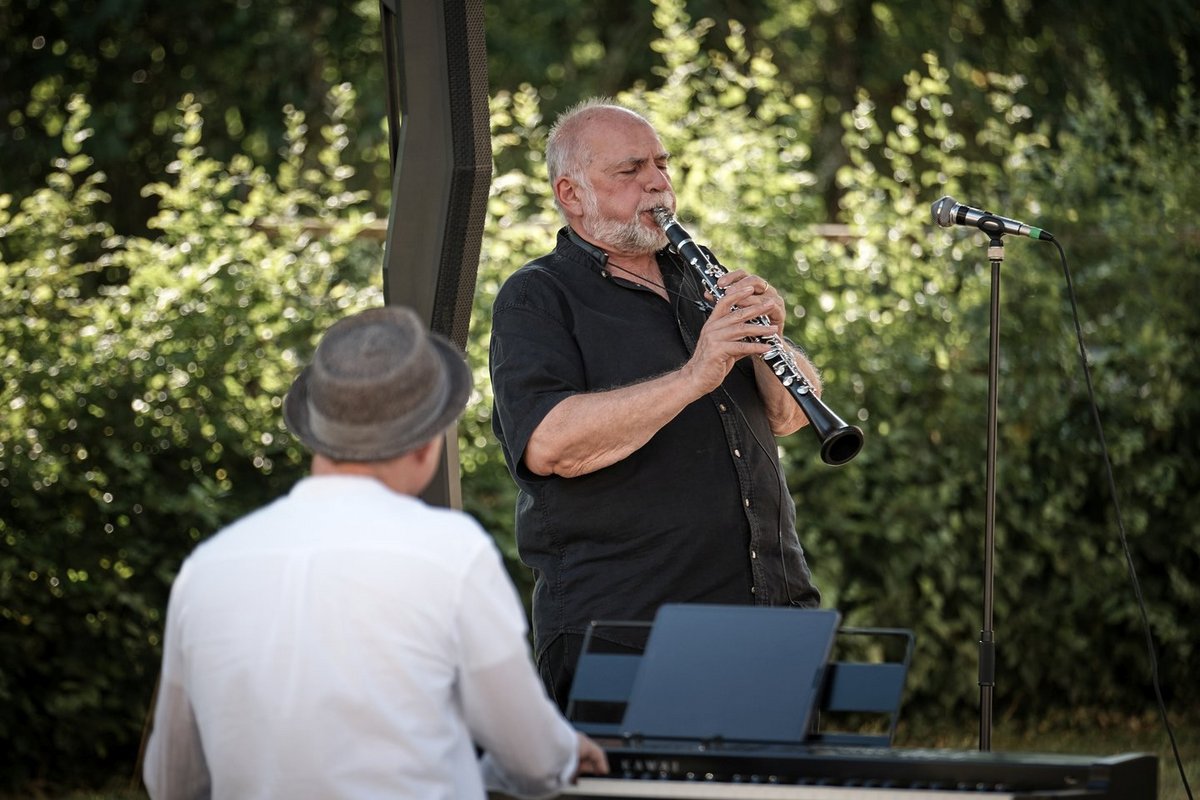 Ein langgezogener Schrei auf der Klarinette – und ab geht’s. In dieser Kunst ist Helmut Eisel schier unerreicht: sein Instrument, dessen Klang ohnehin wie der keines anderen der menschlichen Stimme ähnelt, weinen, jauchzen, wie eine Hyäne kichern, klagen und bedrohlich knurren zu lassen. Wenn so viel Ton gewordene Emotion unkonventionell geerdet wird, dann kommt zusammen, was zusammen gehört - beispielsweise traditionelle jiddische Musik mit Jazz. So zu bewundern in dem Programm „Swinging Klezmer“, das Eisel gemeinsam mit dem Pianisten Sebastian Voltz aufgelegt hat.