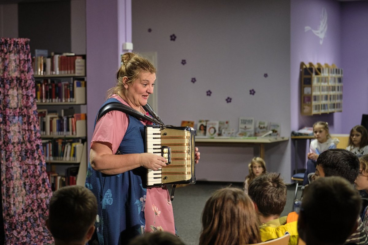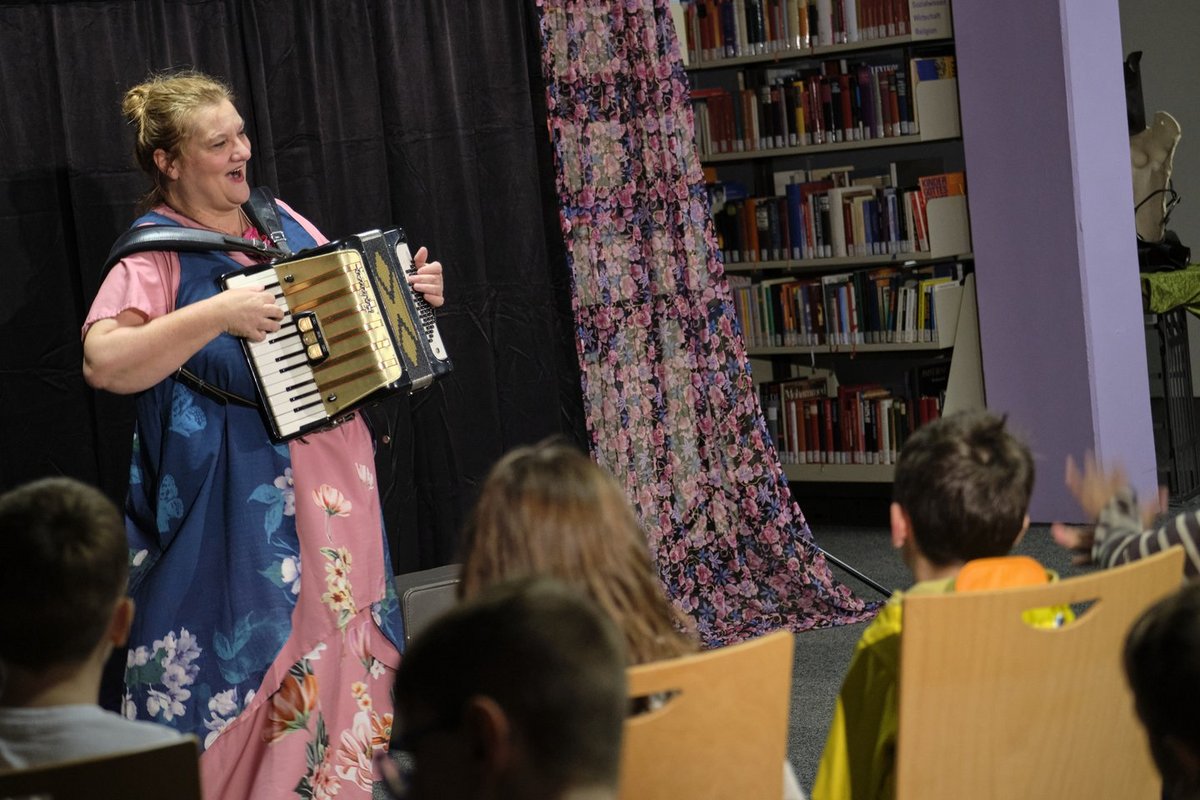 So was nennt man „finnische Pünktlichkeit“: Während man angesichts fast leerer Stuhlreihen bangt, ob noch jemand kommt, fliegt kurz vor Veranstaltungsbeginn die Tür auf, ein ganzer Pulk quillt rein – und ratzfatz sind alle Plätze auf die Minute genau besetzt. Wie von Zauberhand, womit wir auch schon beim Thema wären: Märchenhaft geht’s zu bei der aktuellen Ausgabe von „KulturVorOrt“, der Reihe des Regionalverbands Saarbrücken in Kooperation mit je vier Kommunen. Auftakt war am Montag in Quierschied, wo sich die Gemeindebücherei wie eingangs erwähnt derart abrupt füllte, dass man schon an Hexerei glauben mochte – wegen der angeblich typisch skandinavischen Tugend einer Klasse der freiwilligen Ganztagsschule Quierschied. Aber fantastisch ist die Sache trotzdem, und weiße beziehungsweise schwarze Magie kommt auch drin vor. Denn diesmal gibts an vier Tagen hintereinander die ganz ausgeschlafene Version eines Klassikers der Gebrüder Grimm zu erleben: Mit „Dornröschen hat verschlafen“ (Regie: Udo Splinter) zeigt Doris Friedmann vom Theater „Rotes Zebra“ aus dem rheinland-pfälzischen Alsenz eine musikalisch-clowneske Version des bekannten Langschläferdramas. Serviert mit eidgenössischem Charme, ist Friedmann doch gebürtige Schweizerin. Und seit mindestens 20 Jahren regelmäßig zu Gast im Saarbrücker Schloss; auf ausdrückliche Empfehlung des Kulturveranstalters Charlie Bick, der früher im Auftrag des Kulturforums des Regionalverbands geraume Jahre die beliebte Reihe „Comedy im Frühling/Herbst“ kuratierte – quasi der Vorgänger von „KulturVorOrt“ als konzeptuell ähnlich niedrigschwelliges Format an dezentralen Spielorten. Friedmanns unterhaltsames Ein-Frau-Spektakel für Wache und Tagträumer ab vier Jahren kommt nun wie gerufen für alle, denen während der Herbstferien so fad ist, dass sie sich vor Langeweile mit der Spindel in den Finger stechen möchten. Bloß nicht! Sonst ergeht es ihnen noch wie der neugierigen Prinzessin, die nach dem Fluch einer verprellten Patin in 100-jährigen Schlaf sinkt – und mit ihr der gesamte Hofstaat. Wie Friedmann das schildert, ist jedoch alles andere als zum Gähnen: Die temperamentvolle Bernerin mag’s komisch und interdisziplinär und plaudert, spielt, singt, tanzt, pantomimt, improvisiert und musiziert sich durch die Handlung. Als vergessliche, aber findige Erzählerin spinnt sie den roten Faden der Geschichte und flicht unterwegs zahlreiche andere Figuren ein: Abwechselnd ist sie orakelnder Frosch, böse Fee und gute Fee, Dornröschen oder hipper Prinz, der die holde Königstochter von ihrer chronischen Fatigue erlöst – sprachliche und gestische Nuancen sowie kleine Änderungen an der Positionierung zweier Rosen als Körperschmuck genügen, um den Rollenwechsel zu markieren. Dabei greift Friedmann zu Flöte und Akkordeon, zieht mit beweglicher Mimik Schnuten zum Niederknien und geht immer wieder raumgreifend auf Tuchfühlung mit ihrem jungen Publikum, das sich begeistert einbringt. Und weil die patente Diplom-Künstlerin, die sowohl als Mitglied diverser Ensembles wie als Solistin reichlich Bühnenerfahrung mitbringt, immer einen burschikos-kessen Spruch auf den Lippen hat, kriegt sie selbst notorische Störenfriede flugs eingenordet.