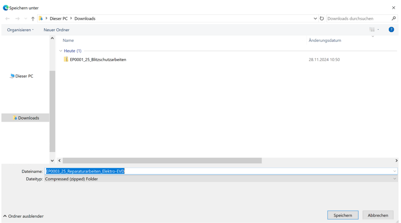 Im Browser Google Chrome wird die GAEB-Datei nach dem Klick auf den Link, ohne vorherige Abfrage eines Speicherortes, direkt heruntergeladen und befindet sich anschließend im Downloads Ordner auf Ihrem Rechner.
