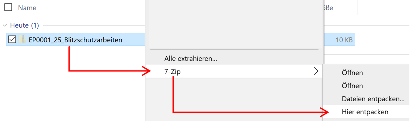 Um die GAEB-Datei öffnen zu können muss diese vorerst aus dem Zip Ordner entpackt werden.