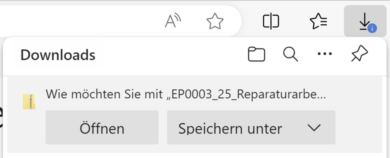 Im Browser Microsoft Edge werden Ihnen verschiedene Möglichkeiten zum Abspeichern der Datei angeboten.